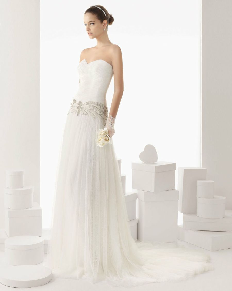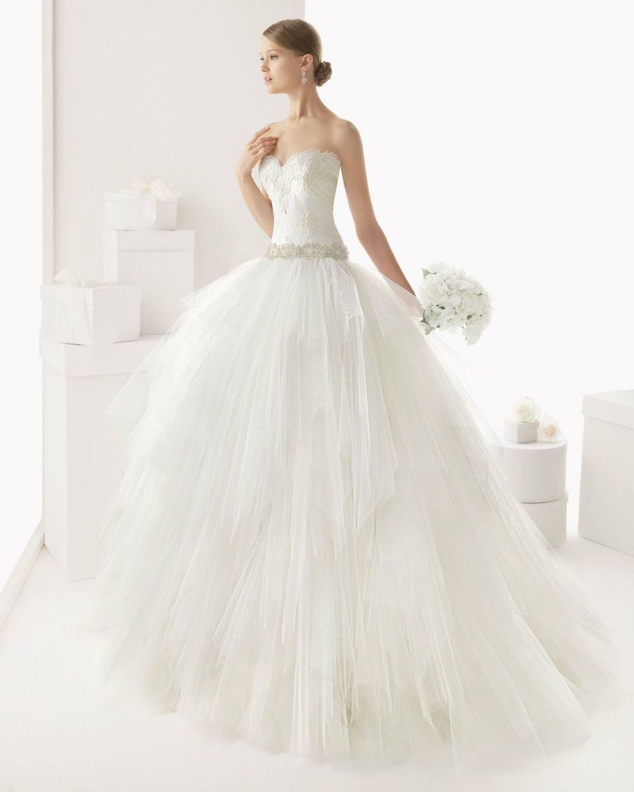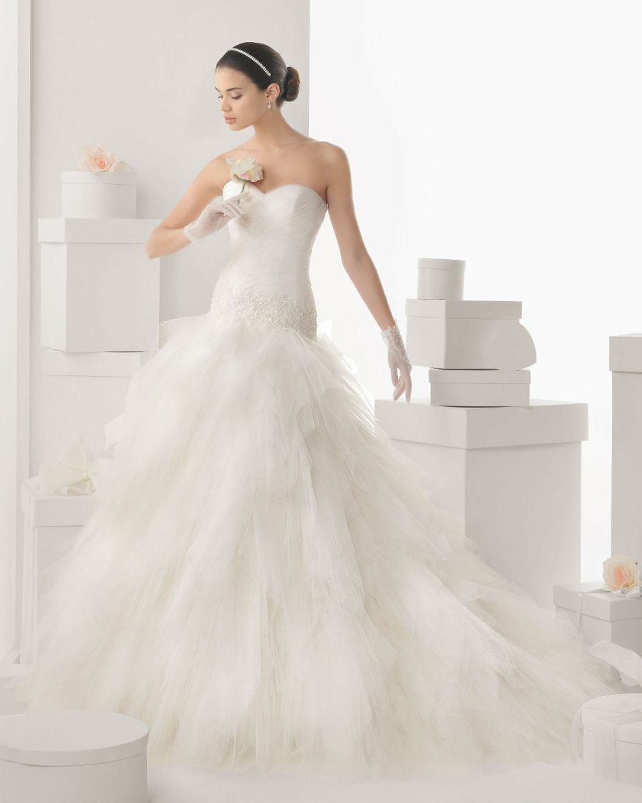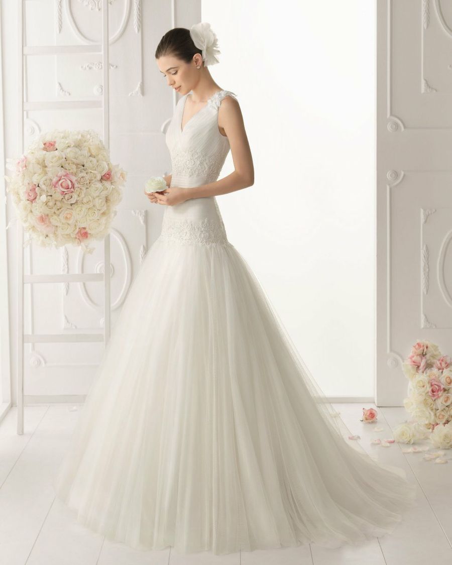Rosa Clará es una gran aliada de los vestidos con caídas ligeras elaboradas en tul. Modelos más sencillos, que encuentran la elegancia en la frescura y en la naturalidad. Perfectos para combinar con complementos.