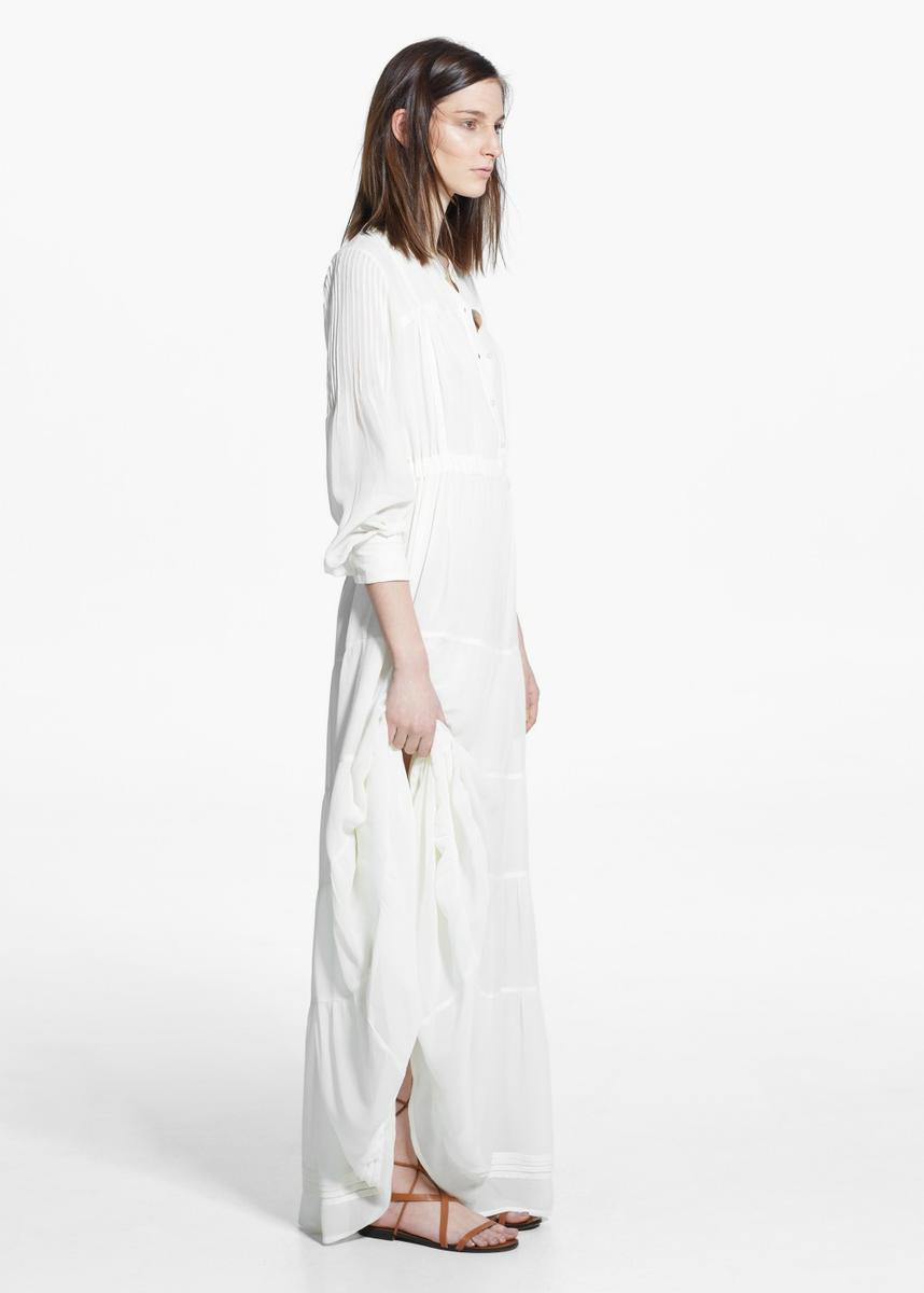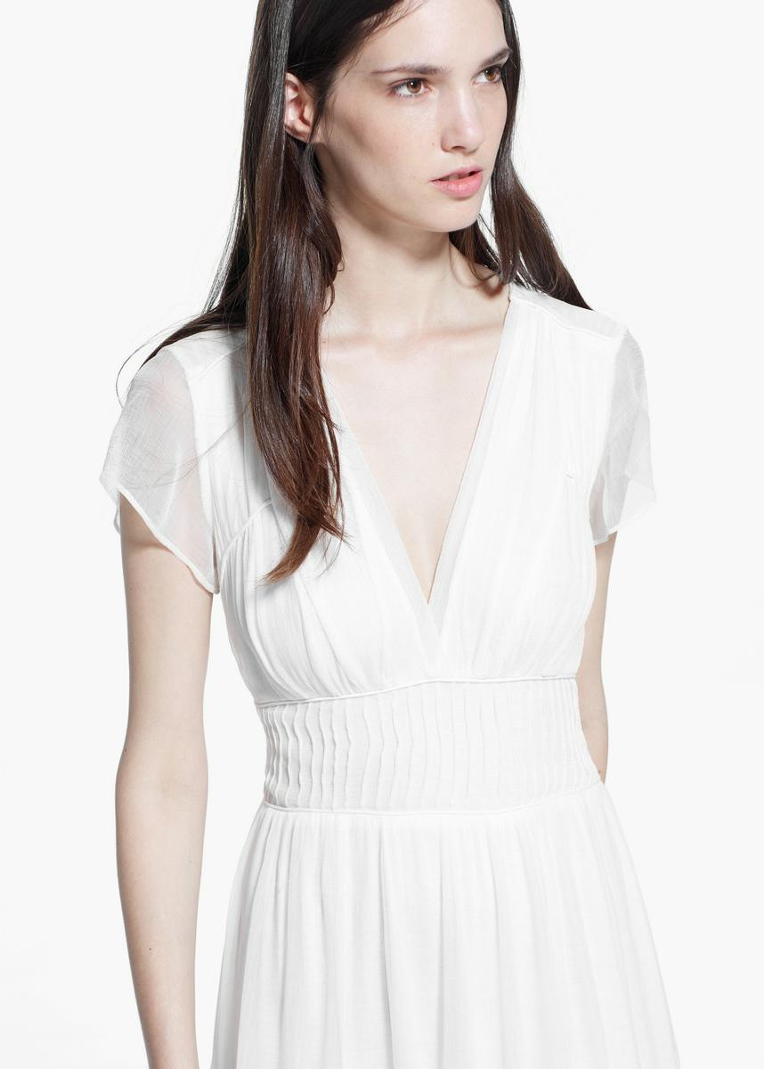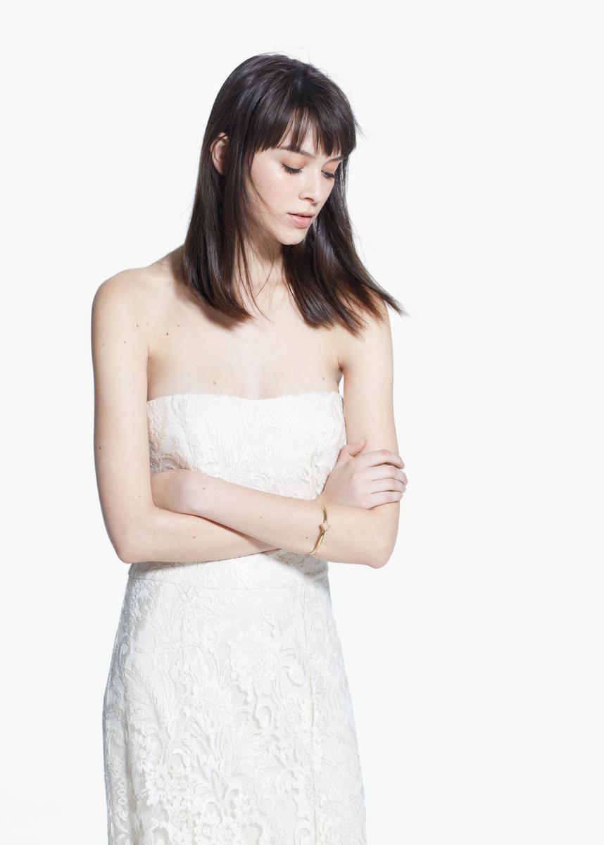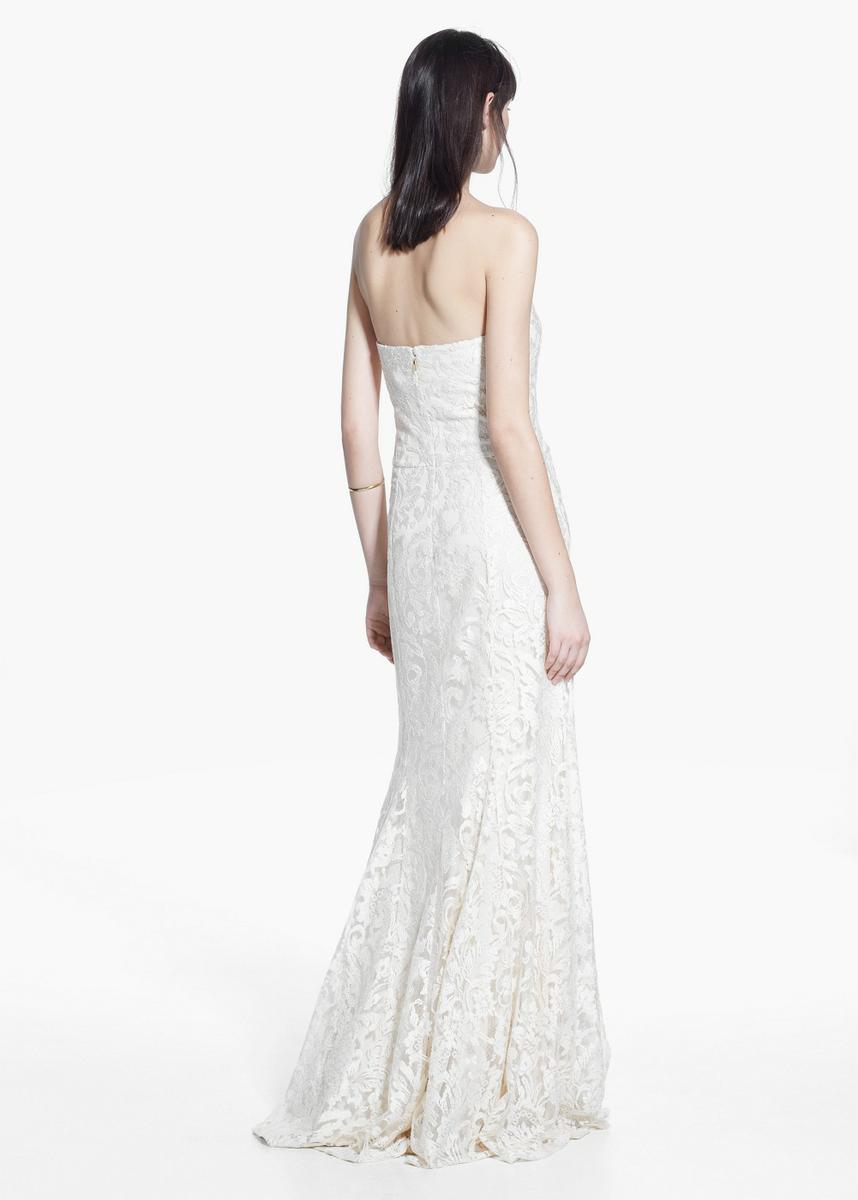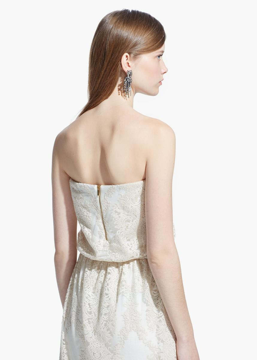 Aquí tenéis un vestido palabra de honor de tono blanco roto ideal por menos de 70 euros.