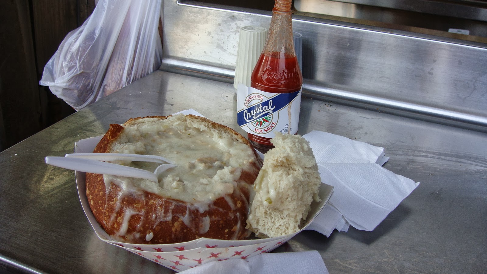 Lo típico vamos,eso fue lo que comimos, un bollo relleno de salsa de cangrejo con patas y todo, a mi me gustó y a Diandra no (pero es de esas cosas que hay que probar estando allí).