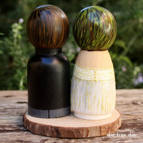 Llevaba tiempo viendo este tipo de muñecos que se decoran para adornar las tartas en las bodas y me entró el gusanillo de hacerlos yo también.