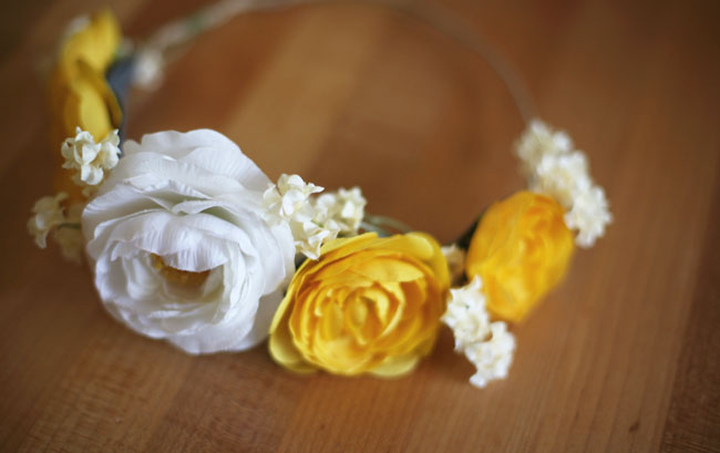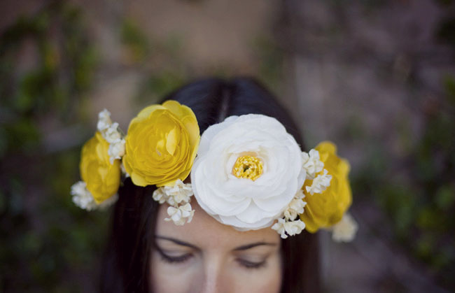 Crea una preciosa corona DIY para tu cabello de novia con flores de seda de diferentes modelos. Elígelas a tu gusto para armar a la medida este vistoso accesorio con cinta floral y alambre. Si tu boda es de día, su colorido se destacará mucho más aportando un look natural pero muy chic al mismo tiempo. Vía greenweddingshoes