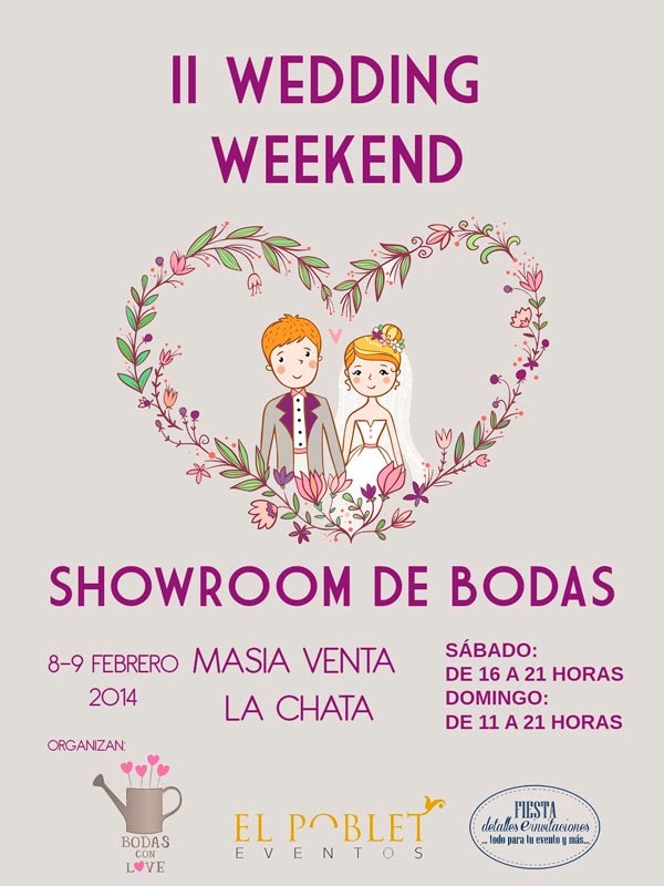 Ya sabéis que los días 8 y 9 de Febrero tenéis una cita en la II Edición de Wedding Weekend que se celebrará en un entorno precioso y privilegiado como es la Masía Venta La Chata, una antigua parada de postas para viajeros de principios del siglo XIX, y a la que estáis todos y todas invitados ya que la entrada es gratuita.