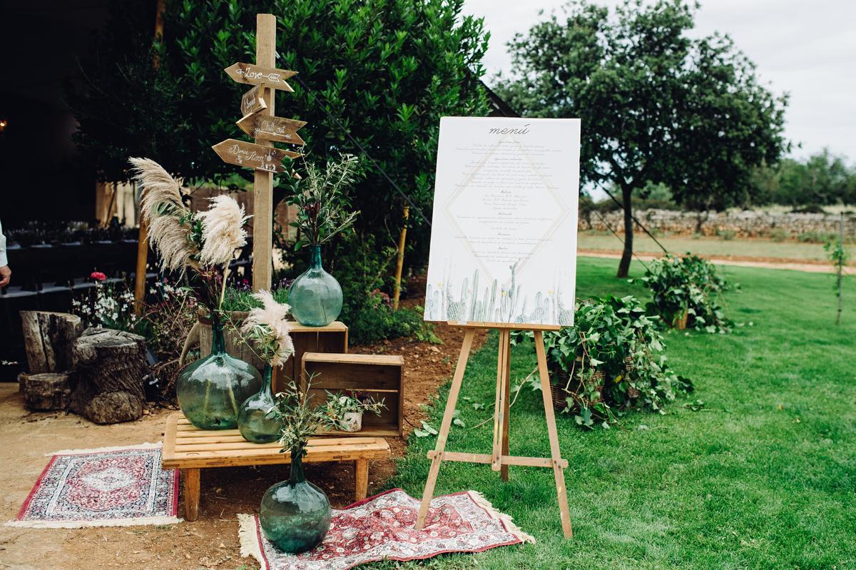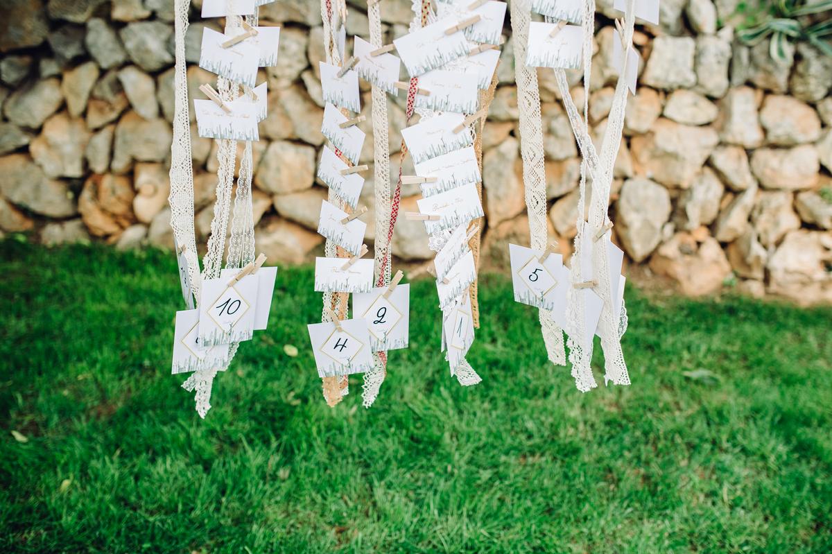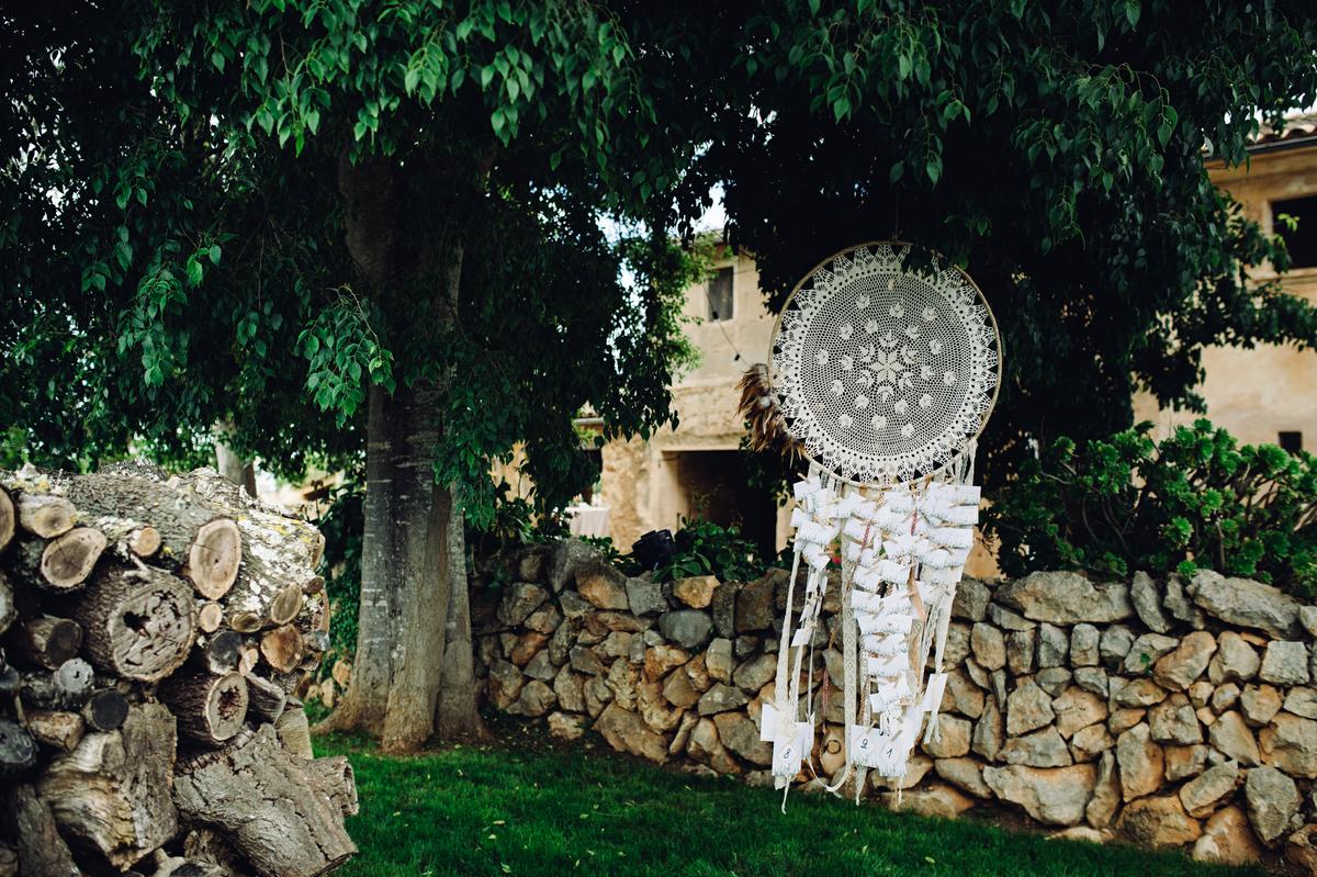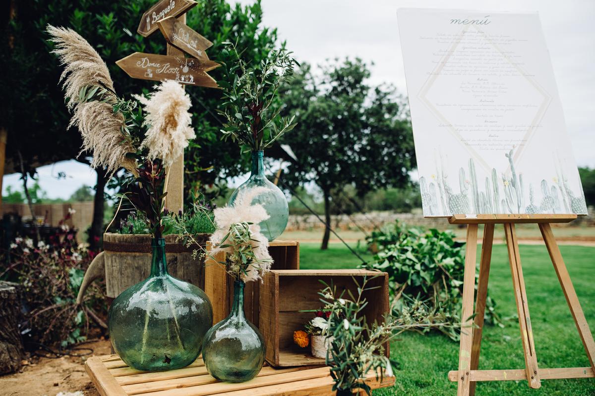 Un espacio decorado con elementos de la propia finca daba la bienvenida a los invitados, se utilizaron muchos detalles aportados por la pareja y la familia (las ruedas de carro antiguas, cestas de trabajo, una radio vintage, portadoras mallorquinas…) Muchos de estos elementos se repartieron por los espacios para dar el toque especial!