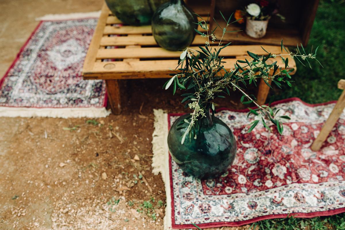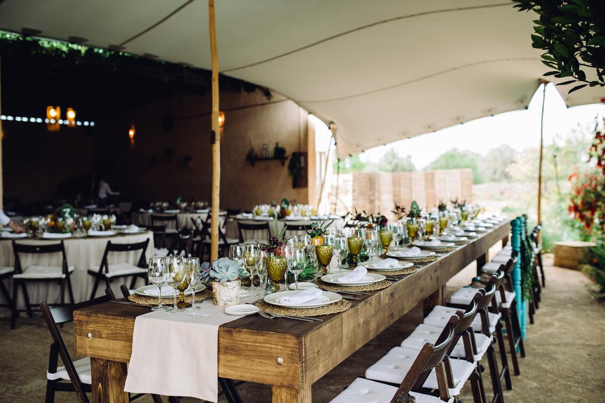 Una carpa beduina ampliaba la zona del almuerzo dando sombra y para qué engañarnos, ¡defenderos de la amenaza de lluvia! Pero tranquilos, el tiempo nos respetó y ¡no cayó ni una gota! Dejó que los invitados disfrutaran de una comida llena de risas y discursos improvisados y un tierno, pero a su vez divertido, discurso por parte del novio.
