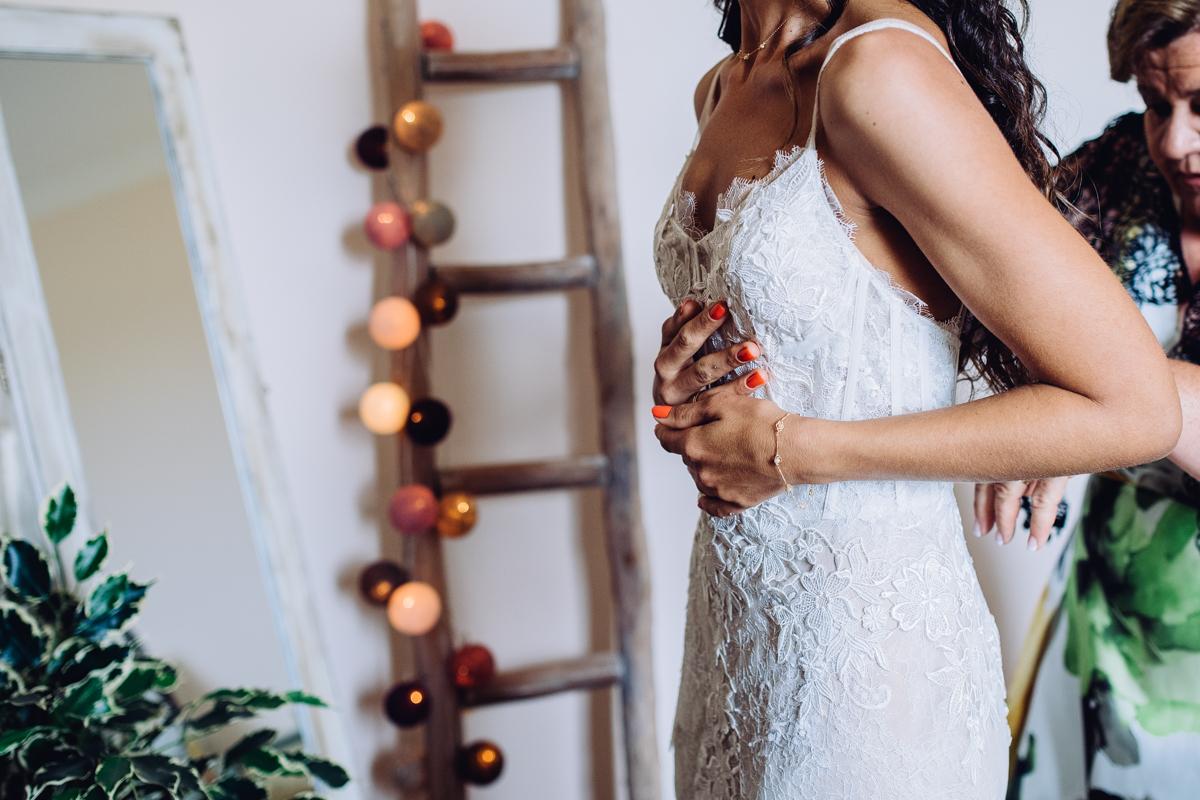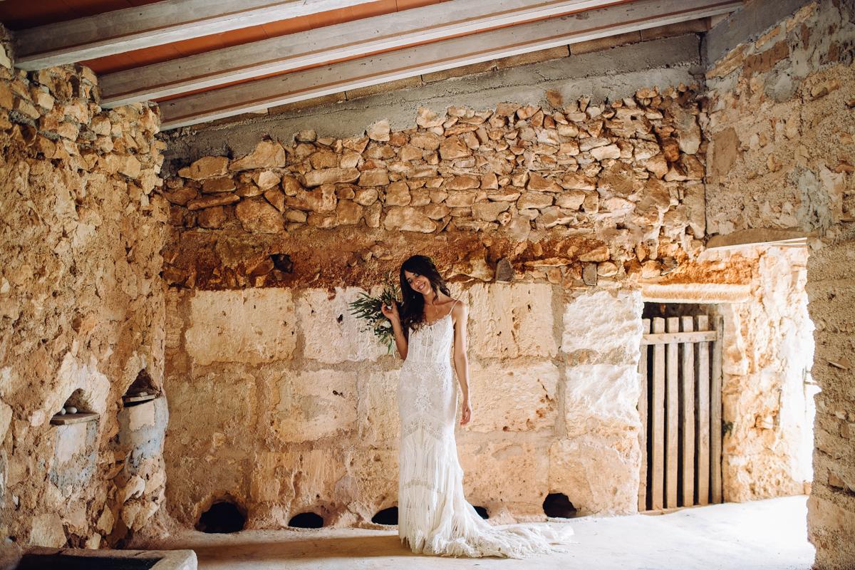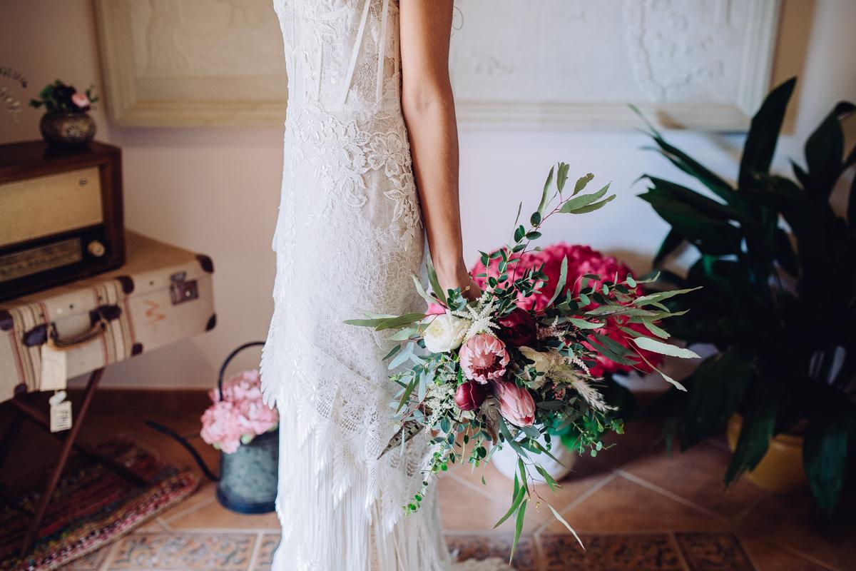 El vestido de la novia era de Somnis Mediterranis y encajaba perfectamente con el estilo que buscaba la novia, algo boho, vintage y que además ¡¡no le podía quedar mejor!!