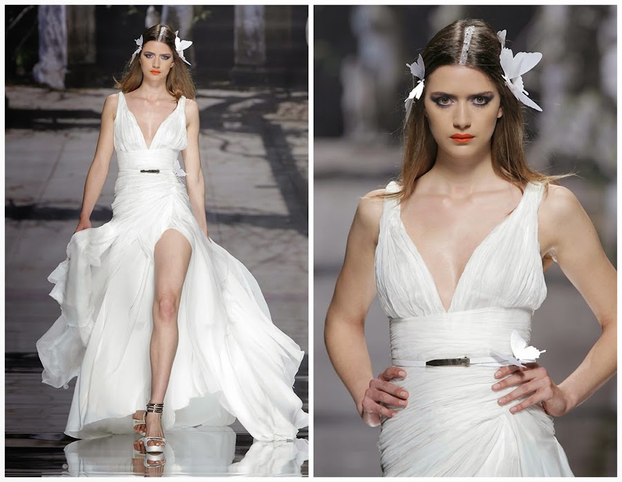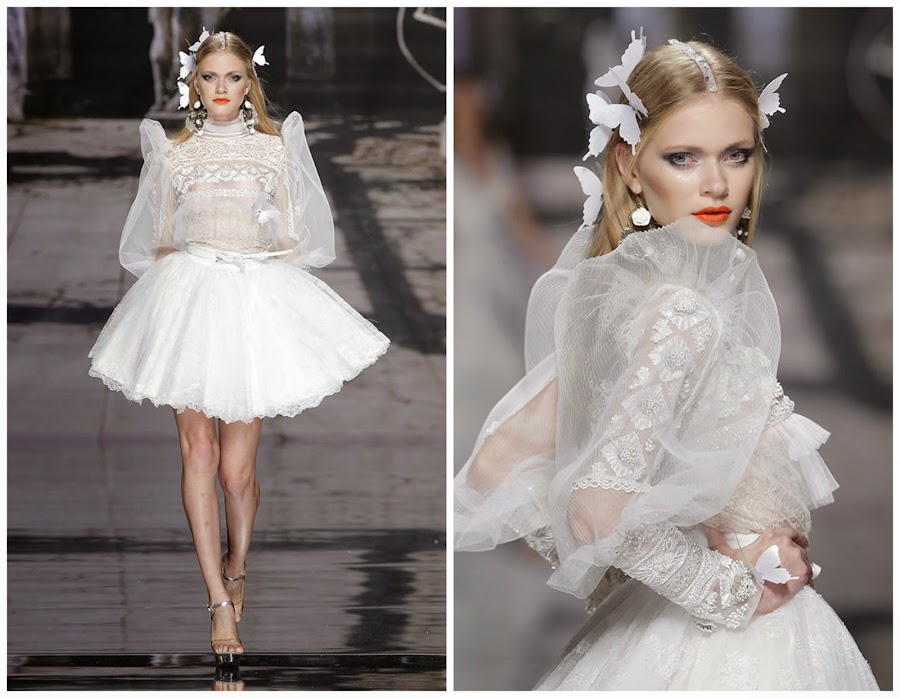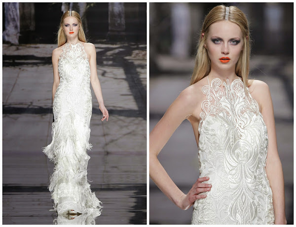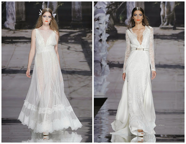 Y en la segunda parte, se presento una línea más de Alta Costura y exclusiva, una línea más trabajada y artesanal. Realizada con los mejores tejidos europeos y pedrería bordada a mano, Tejidos como el guipur de seda en tonos pastel, tules bordados y encajes de chantilly francés. Escotes en forma de V, espaldas bajas y siluetas de sirena. Un contraste de modernidad y vanguardia en este nueva línea.