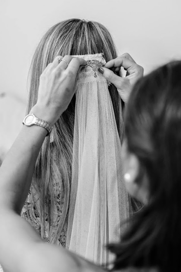 El velo, también de Beatrice Sebastian, iba sujeto con un broche que perteneció a la bisabuela de la novia, de estilo art déco de la famosa joyería Masriera en Barcelona. Una preciosa joya de gran valor sentimental la cual seguirá pasando de generación en generación.
