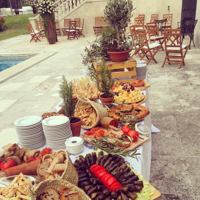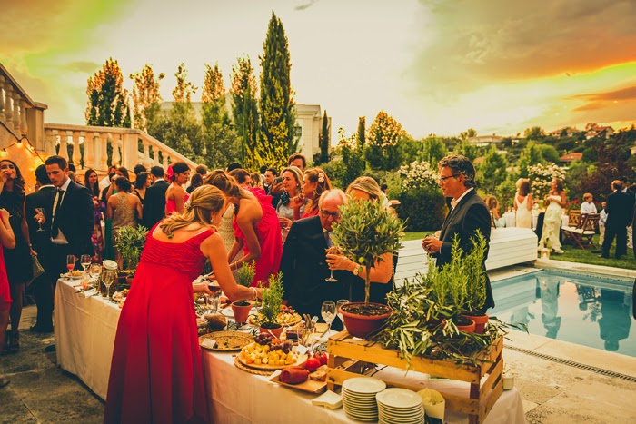 La idea que los novios quisieron para el catering era que fuese una mezcla entre España, Italia e Israel que son los tres países que han formado parte de su vida.