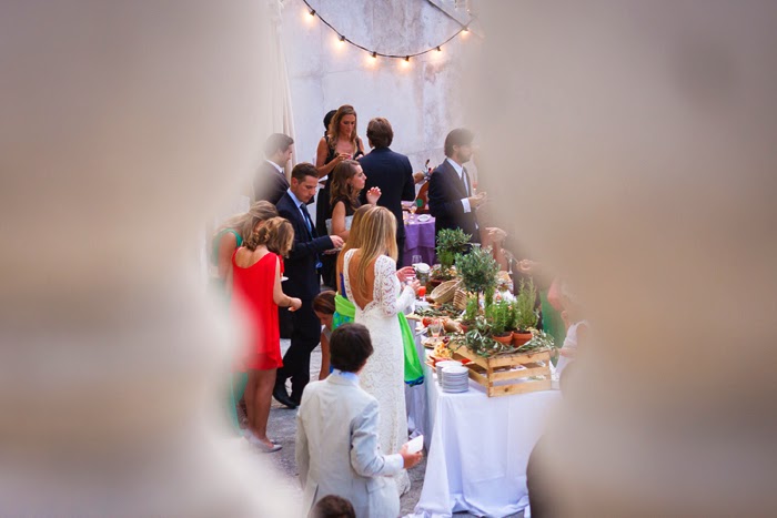 The cocktail party was at David"s parents" residence, a beautiful house where they attended to every little detail. The decoration with Olive trees and summer flowers by "Boda Cata " and Zita"s input contributed to that special Mediterranean touch.